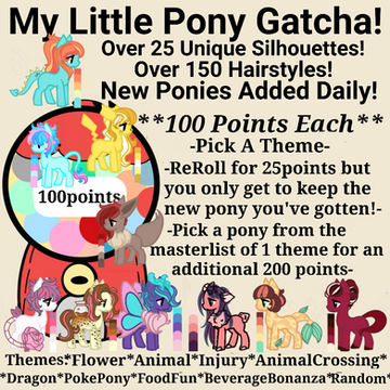 Highest bidder and winner:Found a generator that randomly generates a pony from the TV show. So I thought I'd have it pull up 2 ponies and I'd make some next Gen adopts.