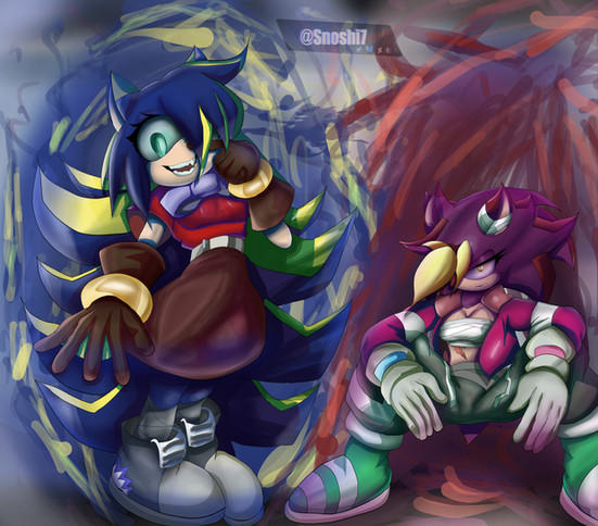 Waaaaaay waaay back in like 2010, when my friend use to be into sonic and had a sonic character, we use to rp a lot and this was one of his character. His commission was after 18 years they have a battle reunion. Drawing this brought back good old memories.Syreen (c) me
