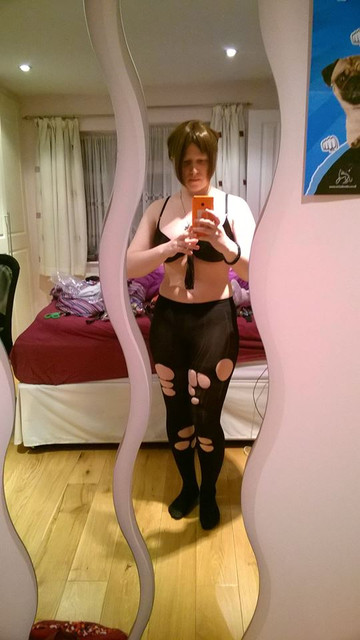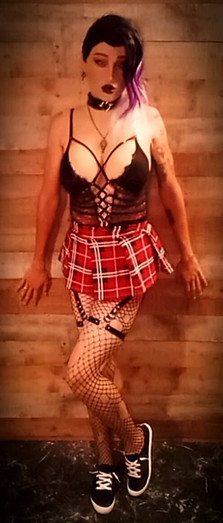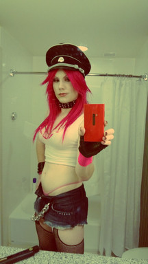 #bondage #choker #crossdresser #emo #fetish #fishnetstockings #garderbelt #heels #lingerie #makeup #mtf #stockings #tattoos #wig