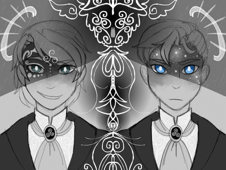 Old art is old. Held a giveaway contest on my tumblr for my Homestuck AU/fic "Mixed Blessings". The winner requested this drawing.