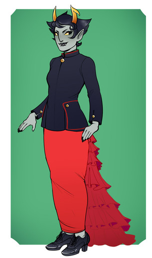 Alrighty, and here is now my half of the trade. First off, that was a rad song I’ve never heard before. Second off, red stilettos on Dave I can imagine being just A Thing now and then. Baggy jeans? Red heels peeking out. Godtier outfit? Red heels for the hell of it. THEY ARE VERY HARD TO WEAR FOR PROLONGED PERIODS, AND IF YOU CAN SPRINT IN THEM YOU ARE A -GOD-. But runway? Fuck yeah, bring on the bright outfits.
