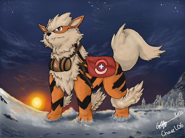 Native to much of eastern and southern Asia, the Arcanine is an apex predator and an obligate carnivore. In the wild, Arcanines mostly feed on larger and medium sized Pokémon such as Stantlers, Tauros, Piloswines and Swinubs. Young Growlithe pups will tend to go after young Stantlers and Swinubs, otherwise they rely on what their mother catches. Sometimes, Especially in Siberia they will prey on Slakoths, Totodiles, Vigoroths, Croconaws, and once fully matured Arcanines will go after the Slakings and Feraligatrs as well. Like many predators, they are opportunistic and will eat much smaller prey, such as Aipoms, Magikarps, Marils and Farfetch'ds.