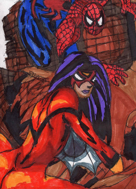 Well to be fair, he is single now, he can get away with that stuff. XD Really good work on the poses and characters. Spiderman's outfit is really well done.