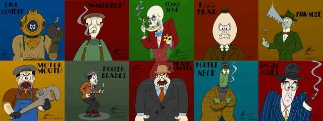 My long awaited pic for 60000th pageview hit. He wanted a lineup for Cool McCool. A series created by BOB KANE (Batman) in the 60s. I liked the show and the villians.
