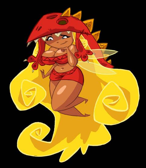 It had just occurred to me that she's wearing the skin of those red fire-breathing dino chefs.