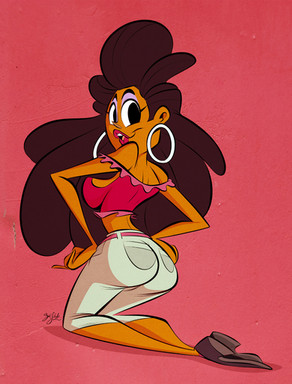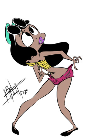 Hm...is she sort of the quirky one of the bunch? Like "Yeah, I am sexy, too, but look, I am also cute in a crazy, lovable way"? Looks like that.
