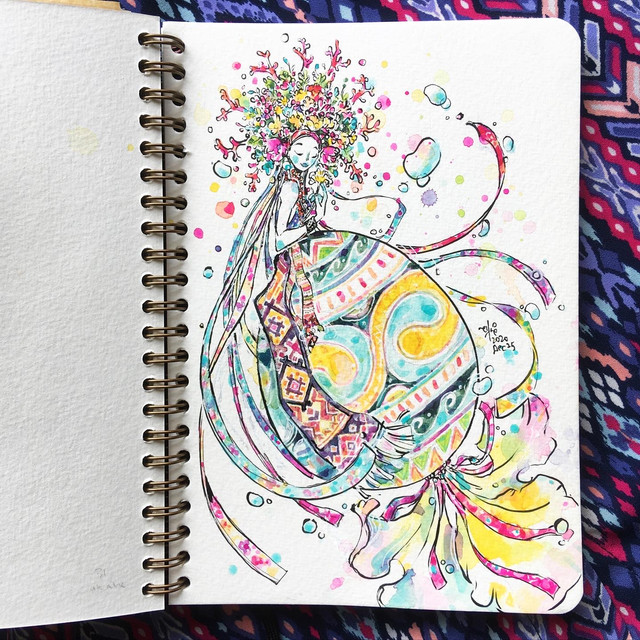 Wow, I really love how you did the clouds and the riffles in her dress!!