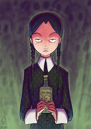 Especially that hostile look in her face and these pigtails that absolutely sum up the nature of the Addams family