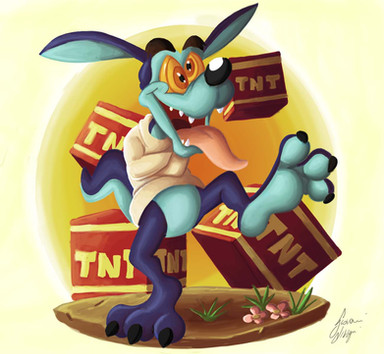 Watch out for that crazy TNT-blowing rascal, Ripper Roo! He's also known for his hyena-like laugh.This is fan art!