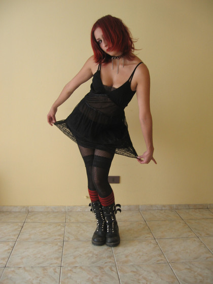 A rare glimpse at the elusive *Psycheen . She had this dress for no occasion at all but a 'special' one that called for chains and gothiness, so we decided to use it for stock. She could barely stand in those boots, but at least they look cool, right? This time, I acted as the makeup artist and photographer.Single shots for this particular pack and more of the model sitting coming next!