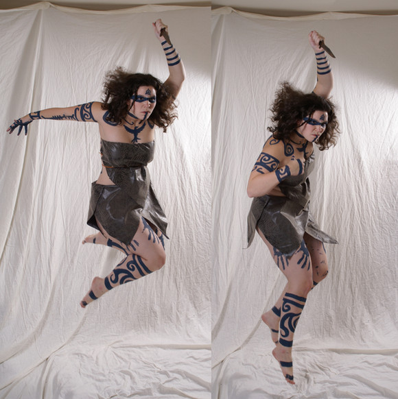 The ever-inspiring kdeln made the most interesting request for stock of a female warrior that wasn't straining to look sexy for the camera. So with that in mind, I present a grittier warrior of the female persuasion for your palettes. I had been looking for an excuse to whip out the fake blood and swords and I finally got it.