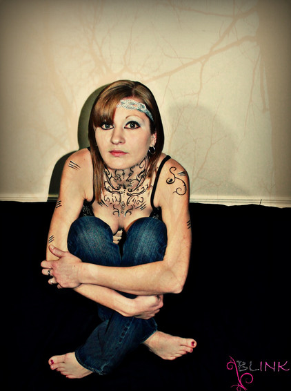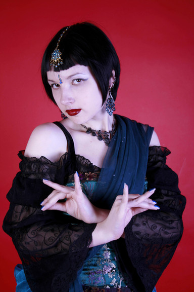 Many thanks to *Psycheen who acted as my photographer, makeup artist, and provider of jewelry and props. She is also responsible for the tattoos you see here drawn in lipstick and eyeliner. They took about an hour and a half to create.