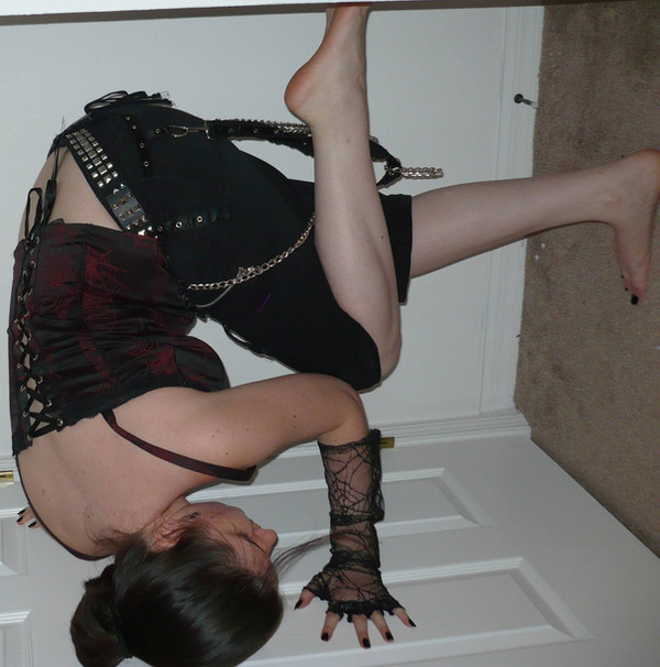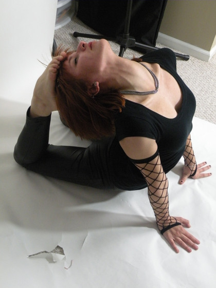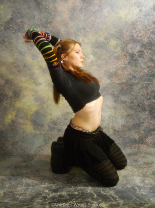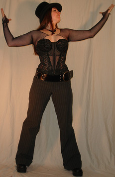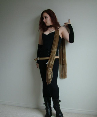 First part of the final series from this past photo shoot (and my favorite). Tube top+cargo pants+blue makeup=A very sleepy looking vampire! My hair hadn't seen the touch of a curling iron for over 5 years till we took this series. Many thanks to *Psycheen who acted as my photographer, hair dresser, and makeup artist for this series.More shots of the model in poignard and katana poses coming next!