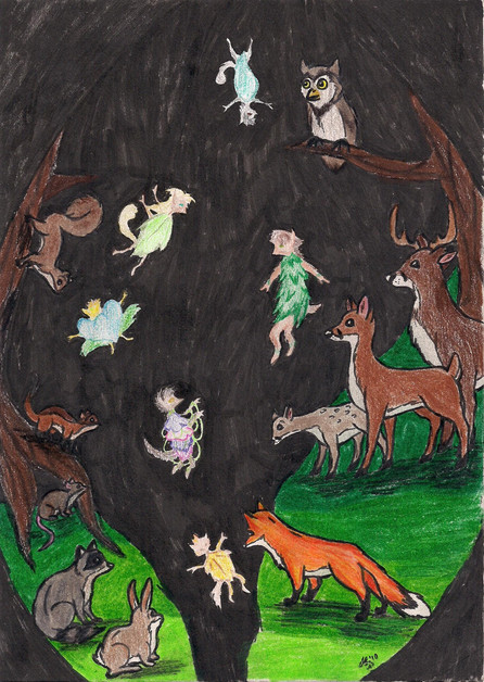 Day one of Folktale Week! I'm revisiting some illustration characters I did a few years ago, in one of my older pieces entitled 'Sleep'. I always wanted to do a whole set about how they met and gtew up together through nature so this seemed like a good excuse.Day one of the week theme is Birth - and this is their first meeting