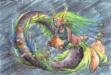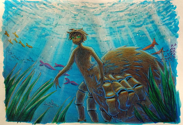 Jake the Alligator man returned to my memories - what a funny little OC he is. I always thought of him as a merman of sorts, but apparently merman groups disagreed so he's more of a weird centaur thingy. Aw I love him anyway.Jake I painted a little way back -