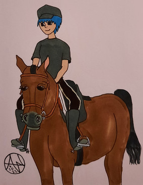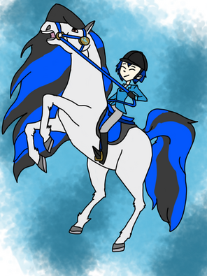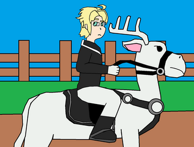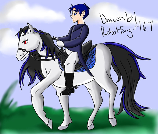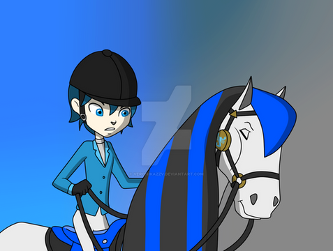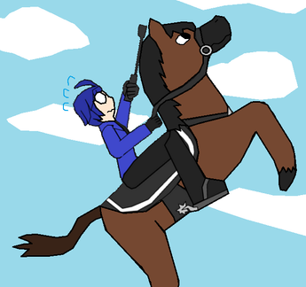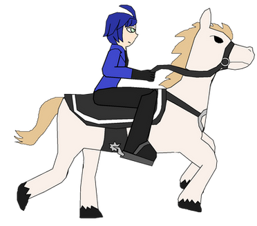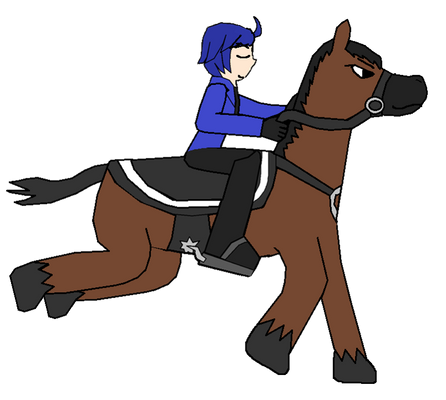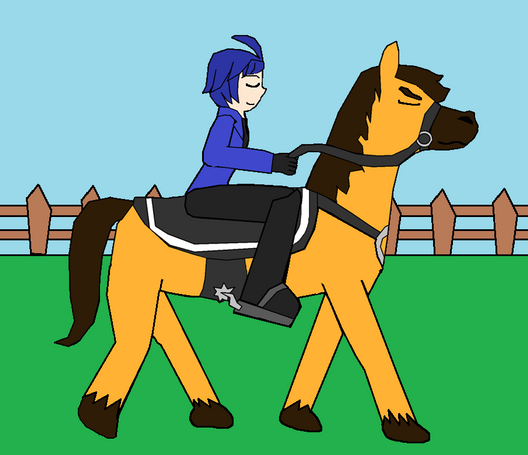 Can we get this blue euden now riding spectrier and using his riding crop on him, while spectrier is wearing blue engoish saddle bridle and reins
