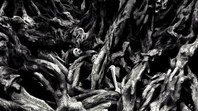 #creepy #horror #alone #blackandwhiteart #dark #darkness #dead #death #end #hole #horrorart #morbid #platitude #pun #skeleton #skeletonart #solitude #somber #well #creepyart #sceneryart #bottom