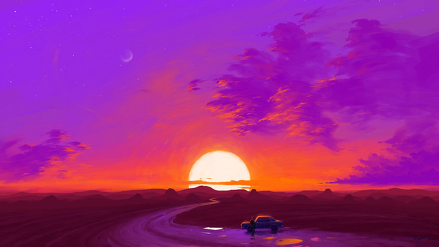#alone #cactus #car #desert #digital #digitalart #digitalartwork #digitalillustration #landscape #landscapeart #landscapescenery #night #nighttime #nighttimescene #starrynight #desertlandscape
