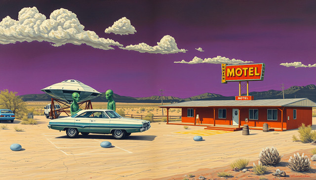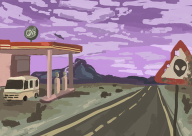 #digitalart #scifi #sky #car #alien #aliens #desert #driving #encounter #extraterrestrial #horror #horrorart #landscape #landscapeart #midnight #night #nighttime #road #scenery #scifiart #starrynight #starrysky #stars #ufo #sceneryart
