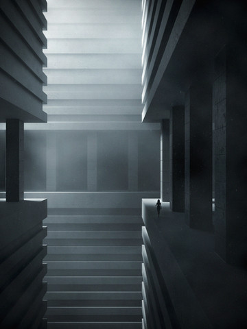 #scifi #architecture #noir #alone #blackandwhiteart #brutalism #brutalist #concrete #darkness #filmnoir #interior #lair #light #massive #scifiart #shadows #solitude #stroll #villain #walk #walking #windows #interiorart