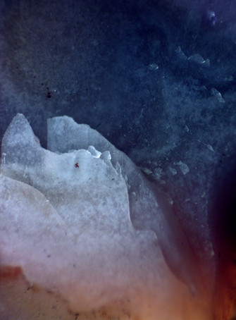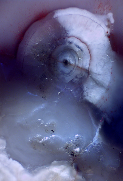 Polished quartz under microscope w.1 light.The color is from a reflection of my skin by positioning my hand around an area of the quartz.