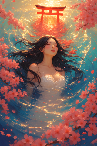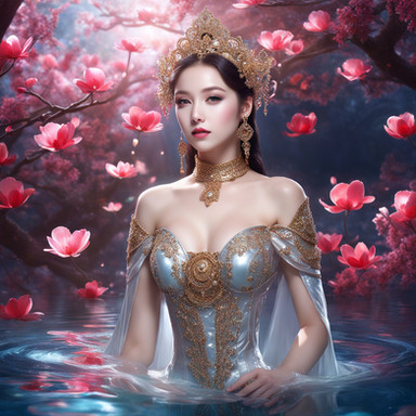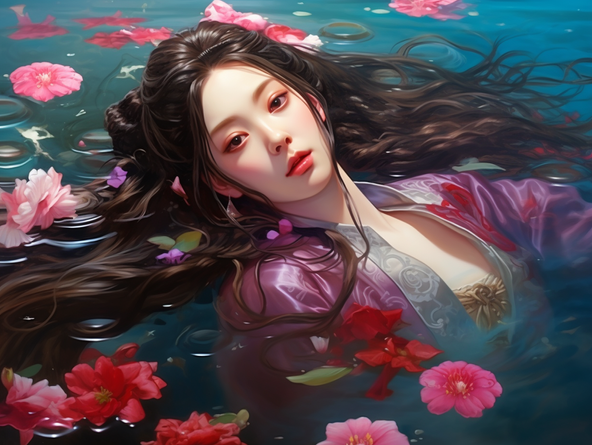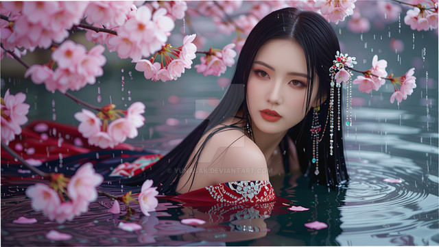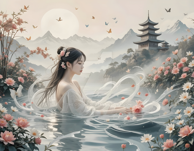 #ai #asian #beauty #garden #lady #pond #portrait #spring #waterclor #asian_beauty #aiart #portrait_beauty #asian_lady
