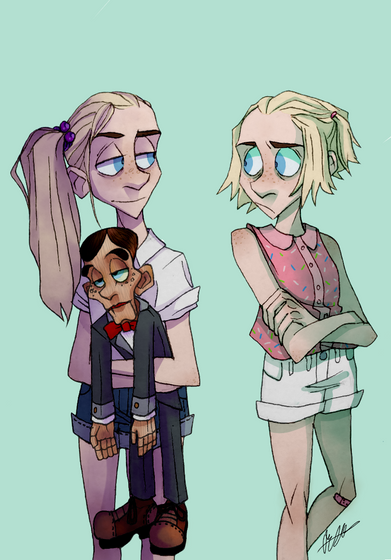 This is a slightly old drawing I made a while back based on "Deal with the Dummy" by Zabbie Q.I just loved her take on Bride of the Living Dummy, and the characters are so interesting and well written!