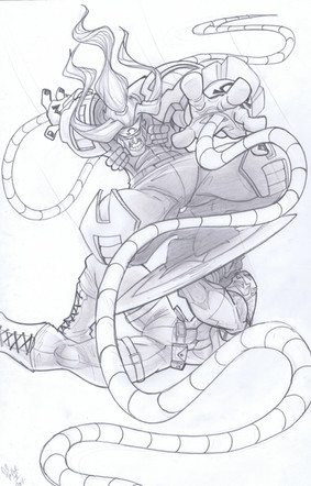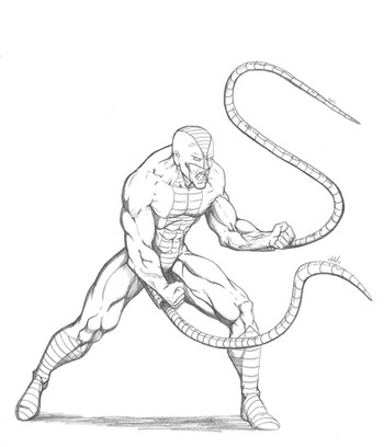 Love the dramatic pose and angling. I might have to take note how to remake the shock blasts for my "Shocker 2099" art.