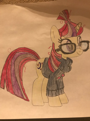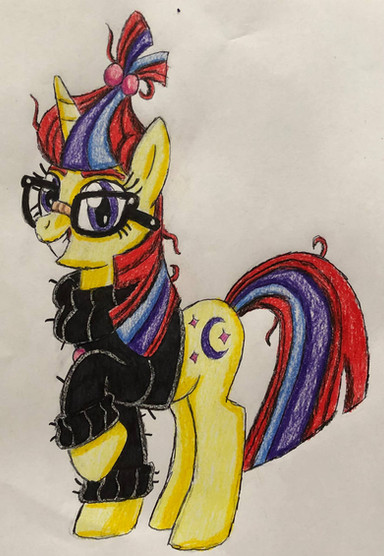 I had a lot of fun sketching this as well. She's challenging, but not to the extent where it becomes frustrating. The most tricky part is drawing the glasses, especially the left lense. But everything else was smooth. The colouring that does look accurate is very nice and her mane and tail (especially the former) look great. Overall, Moon Dancer is a great character who is very fun to draw! and I hope we see more of her soon