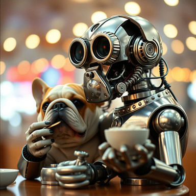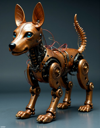 #characterdesign #robot #cyborg #steampunk #digitalart #scifi #sculpture #dog #rpg #wood #aiart #aiartcommunity #aiartworks #sculpturerobots