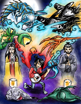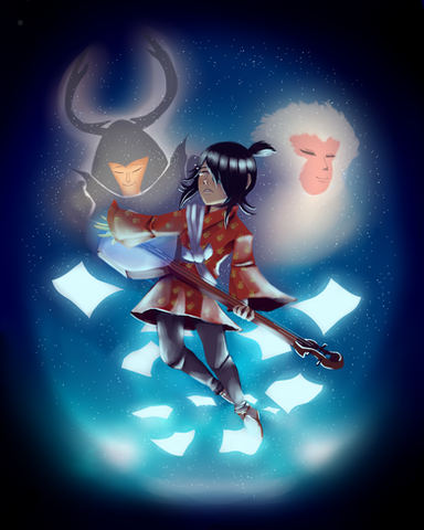 "If you must blink do it now!" -KuboMy inspiration for drawing this depiction of Kubo was from his amazing, magical, story telling. Kubo's story of sadness, courage, love for his parents, love of humanity, and his triumph over evil; take you on an emotional journey of his life. Kubo's magical music he plays on his shamisen come to life in my picture where origami dances in the sky and brilliant colors mesmerize you.