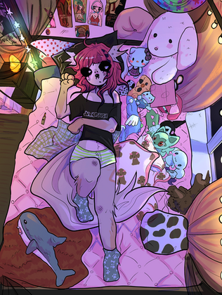 One of my favorite comfort oc's, Elvis, just taking a little nap with her comfort blanket during her pregnancy days. ❤
