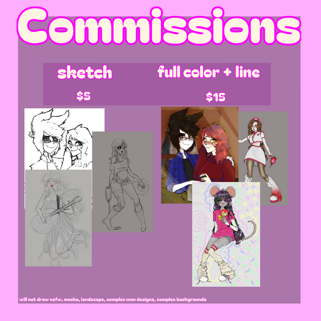 A quick reminder that I have open commissions!if you see something not on the list, but your intrested in getting please send me a DM.