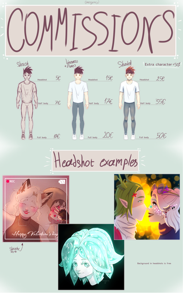 A friendly reminded that my Commissions are currently open!if there's something you want [but it isn't on the list] don't be afraid to pop me a Dm so we can work something out.