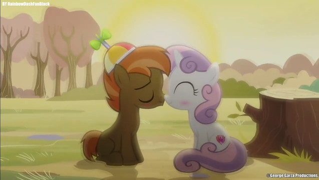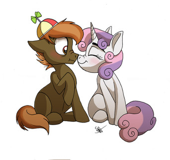 Kindly like Sweetie Belle's giving button Mash nose kiss she's doing like that I like it