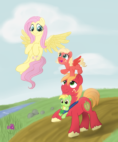 Fluttershy was way overprotective when it came to her foals. She wasn't too keen on the idea of Suncrisp flying but the little filly really wanted to fly so eventually Fluttershy finally gave in and allowed Suncrisp to learn how to fly but only if she taught the filly.But unfortunately Flutter's nerves keep getting the better of her as you can see here. XD