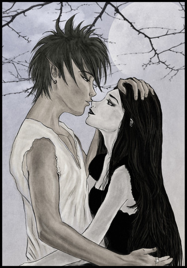 2. Both characters remind my a bit of my two OCs in love (the girl's a werewolf and she has pointy ears, and the guy's a blonde much like your guy here ). I've always wanted to do a piece like this with them, but this takes the cake.