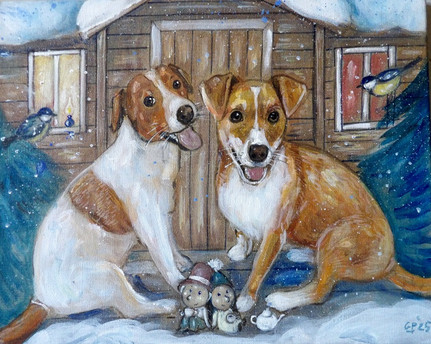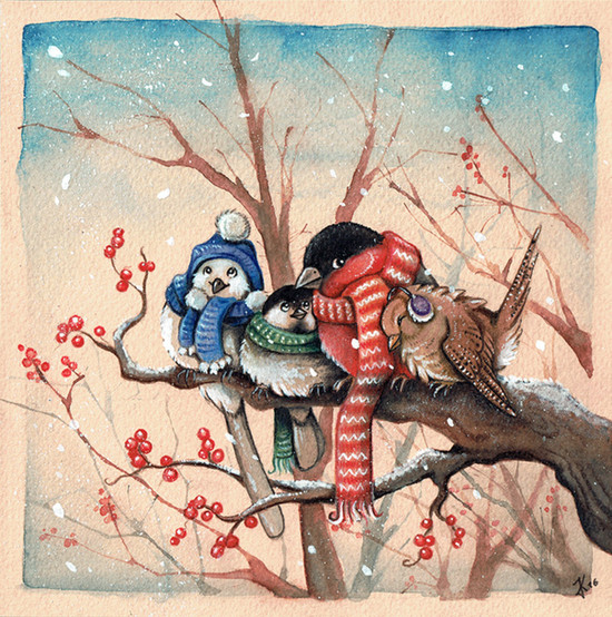 До чего замечательная работа! Хочется разрешения побольше, чтобы рассмотреть всё-всё-всё - и каждую птичку, и скворечники, и ступеньки, и снег на шерсти)