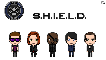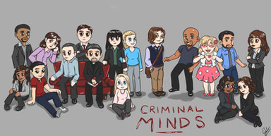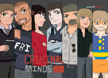 Another cartoon drawing of the BAU, done with the mouse.Left to right: Prentiss, Reid, JJ, Hotch, Rossi, Garcia, Morgan
