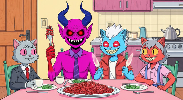 #cartoon #digitalpainting #animation #anime #animecat #animecats #animedevil #breakfast #catpeople #cats #comedy #devil #funny #kitten #mangacat #money #satire #silly #sillycats #mangadevil #sillydevil