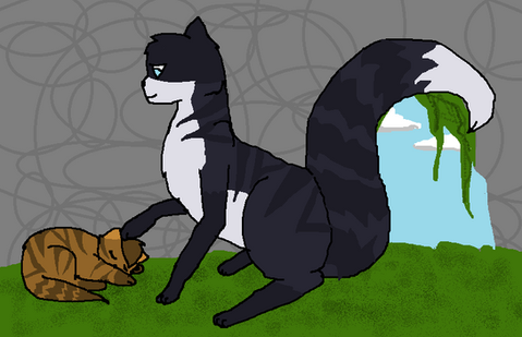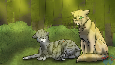 So this is Violetshine and her son, Rootkit/paw. I honestly wish there was more of their interactions in the book because I'd love to see Violetshine develop as a mum as she cares for her edgy son. Either way, good beans.