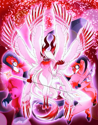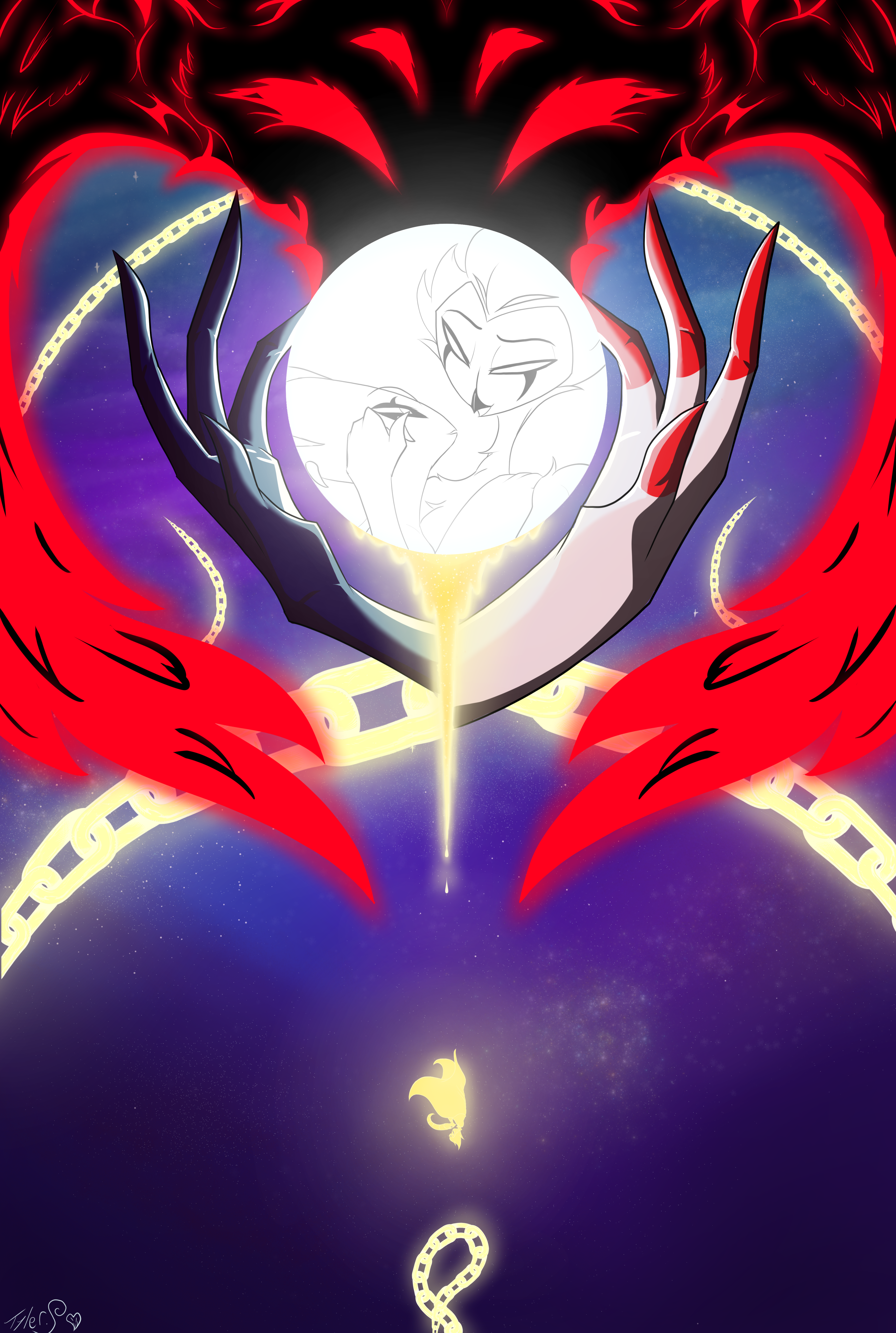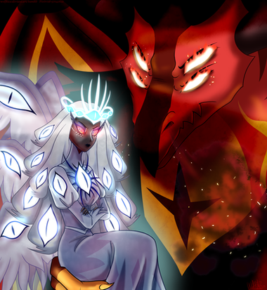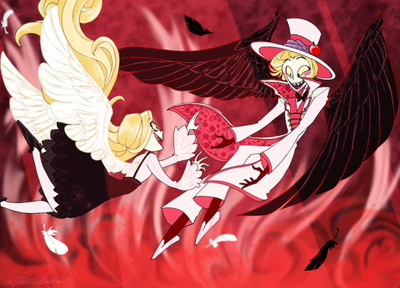So i did an art raffle on twitter last month and the winner, @/BlujayLoser, asked for a nice piece of Luci and Lilith after his fall UwUHope you guys like it as much as I and blu did