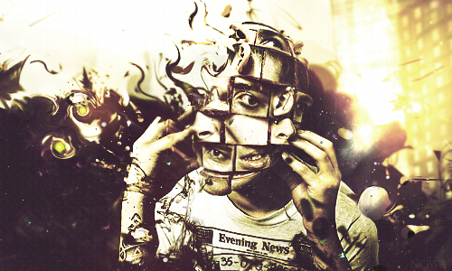 The only weak part of the signature is the text. It could have been placed further up using the rules of thirds and it would have occupied the empty space in the top right corner and the lighting on the left is a little too strong. Besides that, I love the reflection in his mask / face and the C4Ds and cloud textures are awesome.