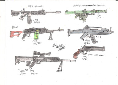 These are common weapons that you will see out through my comic book "SOMA: School of Mercenaries & Assassins."A. L85 w/ Holographic Sight and M320 Grenade Launcher: This shall be used by Tetsuya (main character).