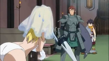 Erza: *casualy stripping off her clothes*Lucy: Erza! What are you doing?!