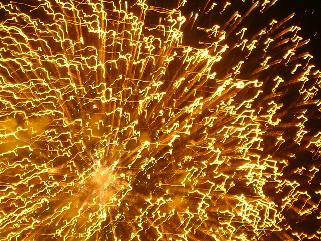 Yea, the only light source was their fire works, and the camera focus didn't really like that, but oh well, that's make it more fun I guess