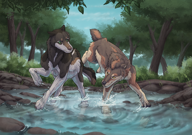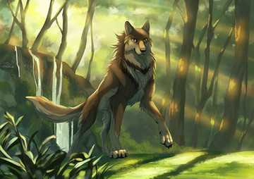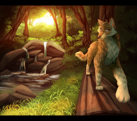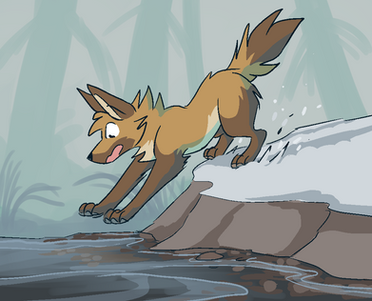 #coyote #female #feral #forest #painting #river