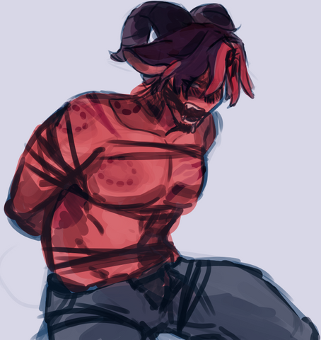 An expression change with this one. A lot of bravado and anger gone just before being blindfolded. Judging by the styling of ropes, I’d the captor just revealed more sinister and erotic intentions. How shocking!I imagine he wouldn’t completely mind being enjoyed in such a way, but it looks like he may get rescued before any of that. But who knows, it’s not done yet!