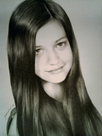 Really nice job with the hair, but maybe you could try to make the shading in here face a bit darker that way she isn't so 2d anymore, then she would really pop out of the drawing Good luck, nice drawing!