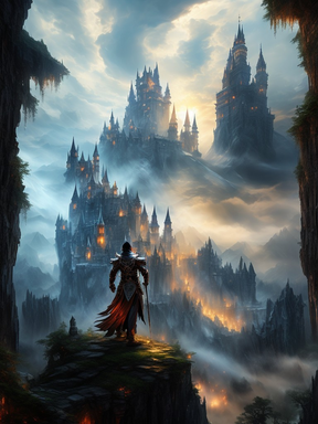Fulgrim took a deep breath and began to descend the mountain. The journey was treacherous, but he was determined to reach his castle. He moved with a swift grace, his sword still pulsing with an otherworldly energy.